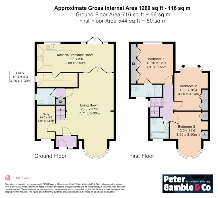 On the 1st Floor are three DOUBLE bedrooms and two bathrooms including one ensuite.