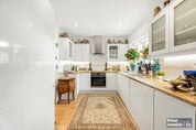 The kitchen comes with a new built-in large fridge and separate freezer, and a new washing machine – all included in the sale.